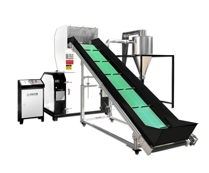 静音粉碎机的回转刀为三排,固定刀为四排,为七排刀设计。粉碎效率比普通五排刀高一倍。粉碎室、轴承盖为双层通水冷却。可配合螺旋上料机或风机上料机一起使用,以减轻装袋人工。
